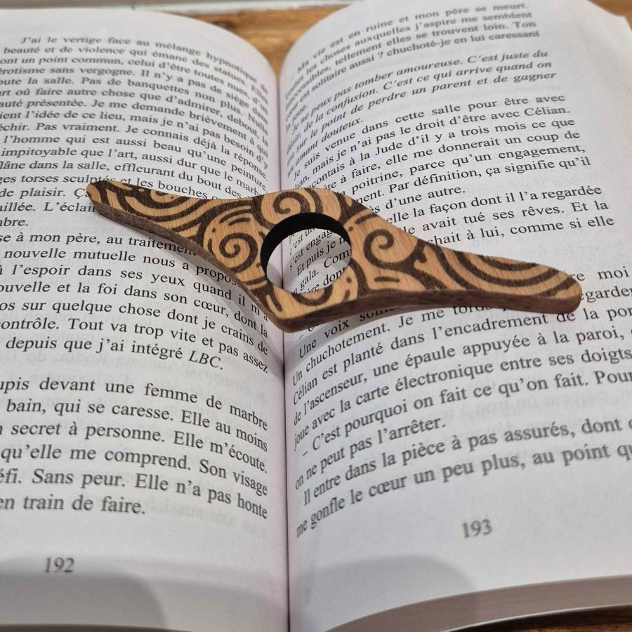 Vous adorez lire mais jongler avec votre livre tout en tenant votre tasse ou en tournant les pages devient vite inconfortable ? Cette bague de lecture en bois est faite pour vous.